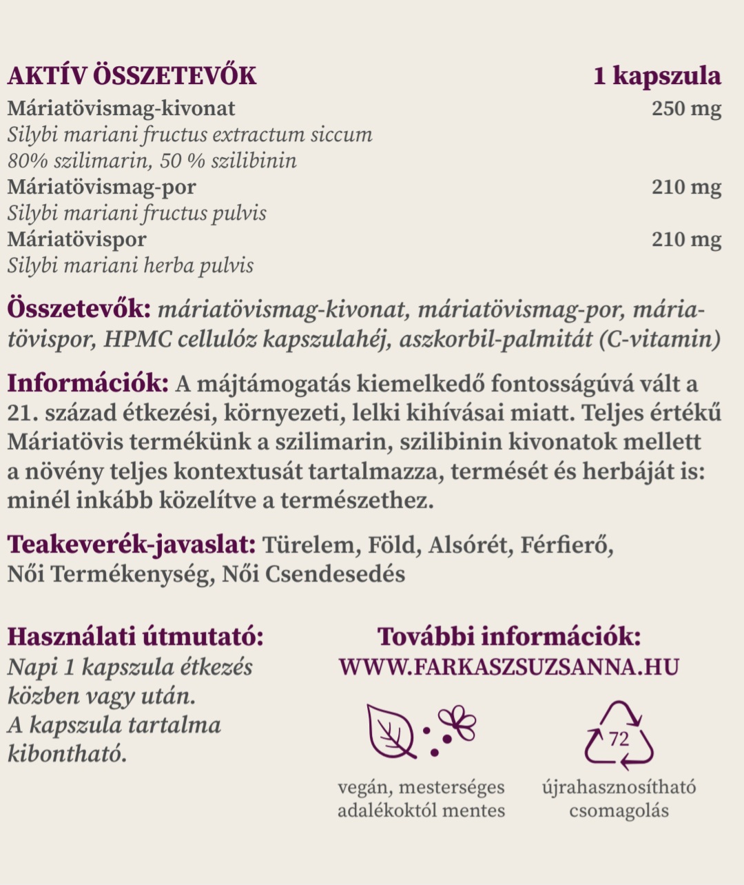 Várandósság alatt nem javasoljuk a készítmény. VEGÁN termék.