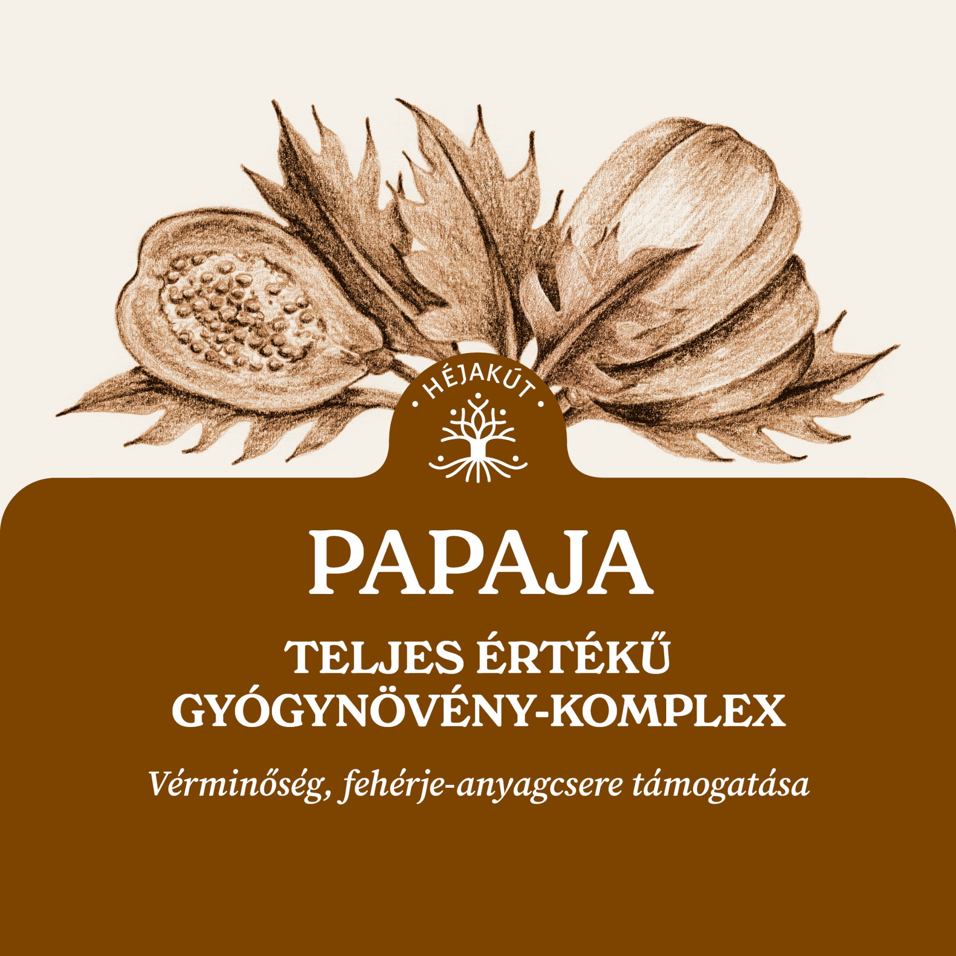A Héjakút Teljes értékű Papaja Gyógynövény-komplex egy egészségmegőrzést támogató étrend-kiegészítő termék. A 37/2004 (IV. 26.) EU-s rendeletben foglaltak szerint az étrend-kiegészítők nem alkalmasak betegségek és a szervezet működési zavarainak gyógyítására, kezelésére, megelőzésére. Fogyasztásuk nem helyettesíti a megfelelő szakorvosi diagnózist és a gyógyszeres kezelést, de kiegészítheti az orvos által javasolt terápiát. A leírások a hatóanyagokra vonatkozó, szakirodalmi forrásokból vett állítások. Az 1169/2011/EU rendeletnek megfelelően az állítások célja, hogy a fogyasztók megfelelő információhoz jussanak a magas szintű egészségvédelmük megvalósítása és a tájékoztatáshoz való joguk biztosítása érdekében. Az információk nem értelmezhetők orvosi tanácsként személyes problémánkra, és nem kívánnak javaslatok lenni konkrét tünetek kezelésére. Egészségügyi problémájával mindig forduljon szakemberhez: orvosához, gyógyszerészéhez!